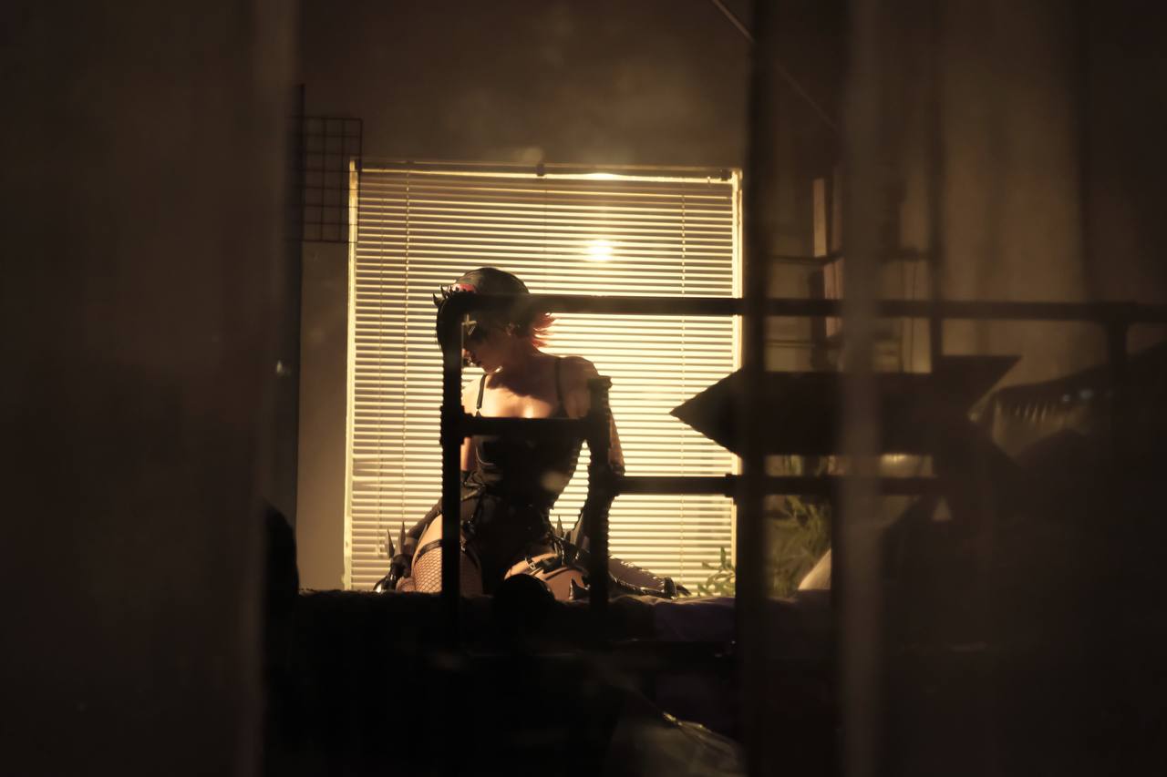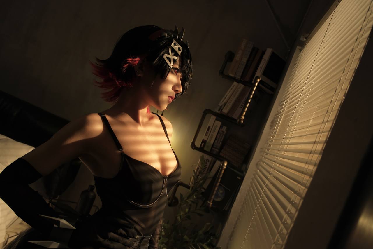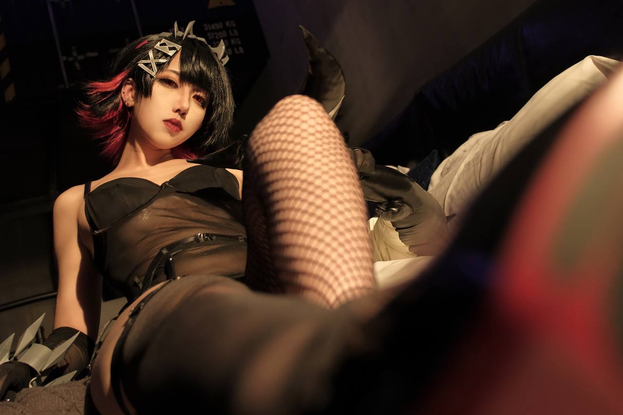 穿黑丝渔网袜的短发少女